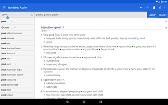 WordWeb är en ordboksapp och en tesaurusapp. Du kan slå upp ord och se deras definitioner, användningsexempel, uttal och ljuduttal för varje ord. Du kan också slå upp relaterade ord baserat på ditt nuvarande ord.